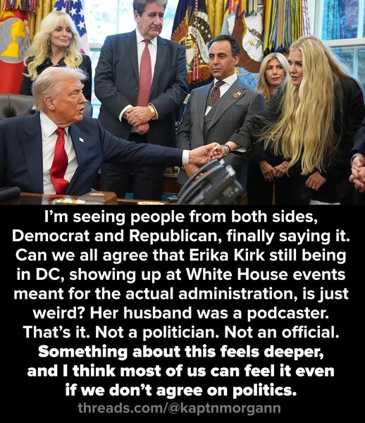 she likes the camera and the camera likes her. some speculate she was a plant to hook up with Charlie. that the Party will look to replace JD Vance's wife with her as First Lady, like a tv show might replace a wife on a sitcom for better ratings https://www.facebook.com/share/p/1CBkKA78hs/- POLL: Epstein damage: How bad?