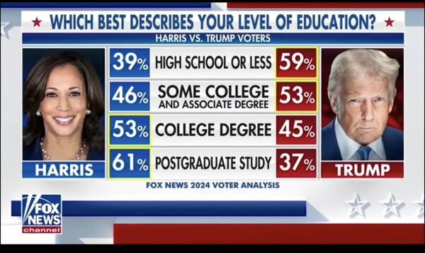 this is why the he has said, "smart people don’t like me" and "i like the poorly educated." But how you vote is more indicative of your emotions than your IQ.